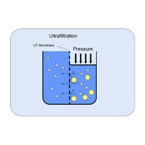 Ultra filtration is a membrane-based technology to remove suspended solids, Colloidal matter, High Molecular Weight Substances, bacteria, and viruses from various feed water sources. UF can achieve a low and consistent silt density index (SDI) and is often used as a pre-treatment for reverse osmosis using surface water, seawater, and biologically treated wastewater as a feed source.